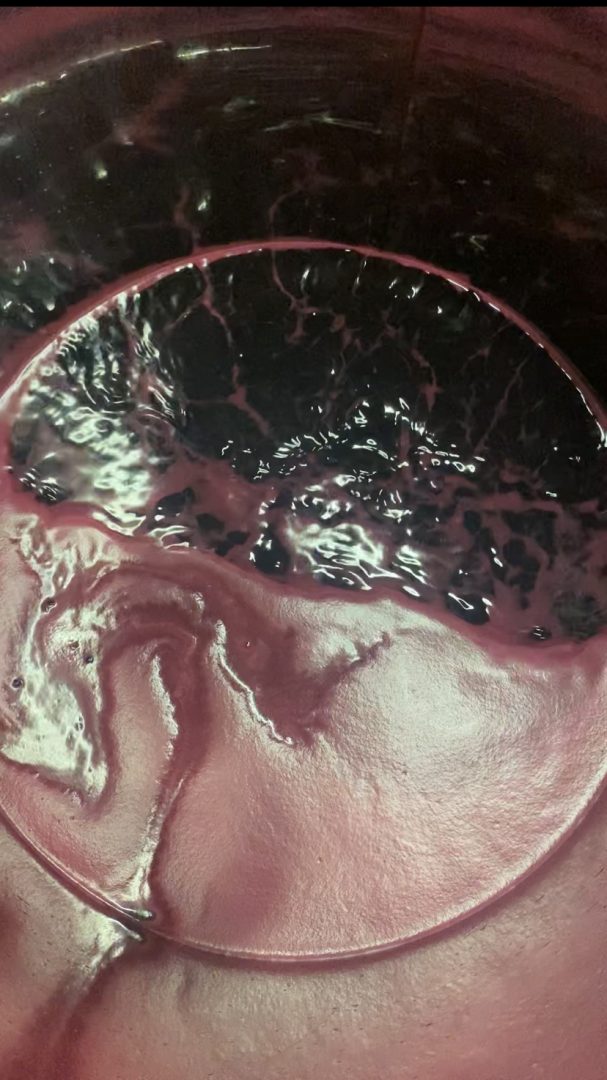 La macération carbonique est aussi une grande première pour nous. Nous avons placé la vendange grappe entière dans deux cuves béton de 40 hectolitres chacune. Les premières caisses rentrées ont été foulées pour laisser un fond de jus dans la cuve. Et nous avons rajouté 50 litres de syrah en fermentation pour que la saturation en CO2 se fasse. Les cuves ont été remplies au maximum et scellées. Maintenant, il faut attendre que la magie opère. Le décuvage devrait se faire semaine prochaine et pour l'instant les baies se dégustent très bien et commencent à changer de profil.